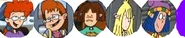 Nicky has blonde hair, with one side of the bangs always covering one of her eyes. She wears a mint green sweater and a red skirt with a blue sweater tied around her waist. She also wears white socks and brown shoes.