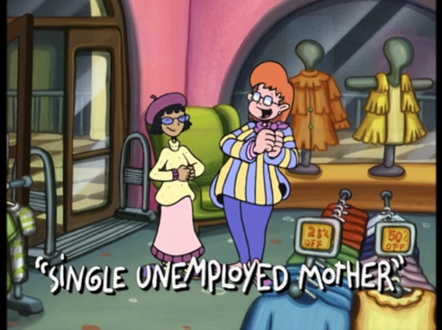 Single Unemployed Mother is the A segment of the twenty-fourth episode of Season 3 of Pepper Ann and the eighty-sixth segment overall; it premiered as part of Disney's One Saturday Morning on January 22, 2000.